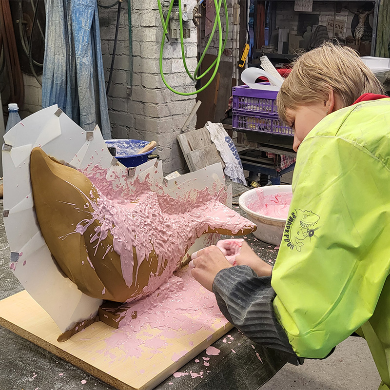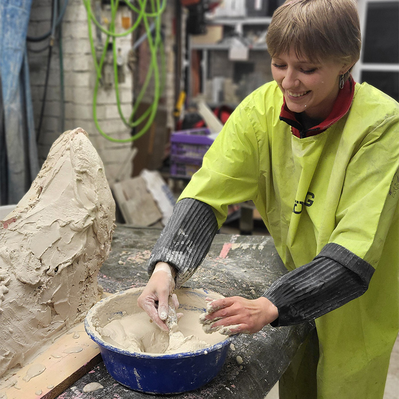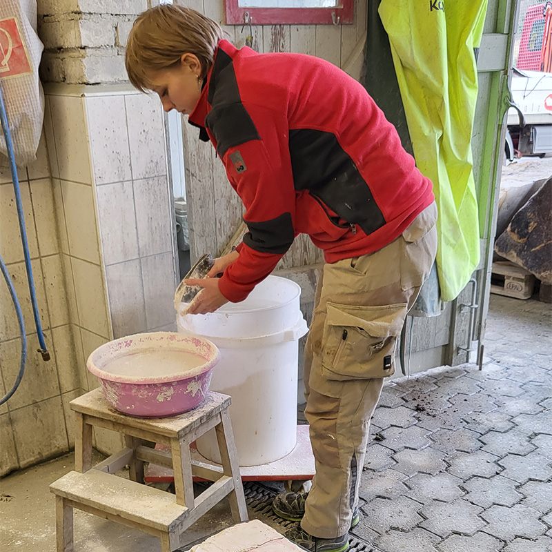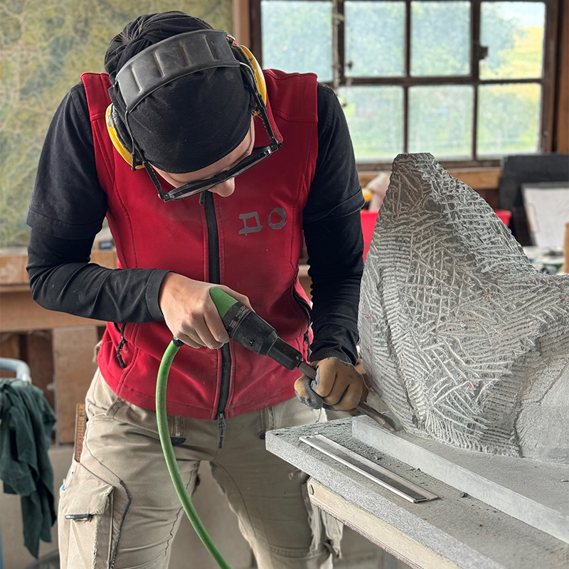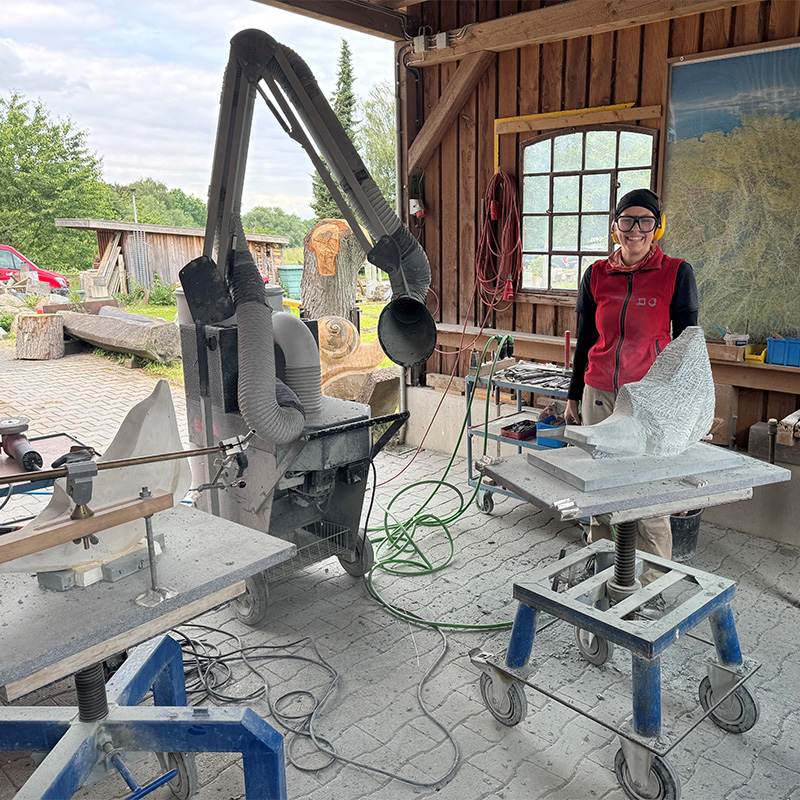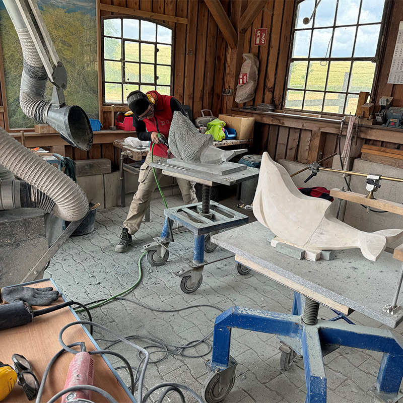 Impressionen zum Gesellenstück von Leelou Paschen. Begleiten Sie uns bei der Entstehung eines Delfins aus Grünsandstein.